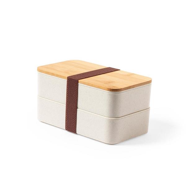 Pudełka śniadaniowe 2 szt., 2×500 ml, w komplecie: widelec, nóż, łyżka, bambusowe wieczko, połączone paskiem