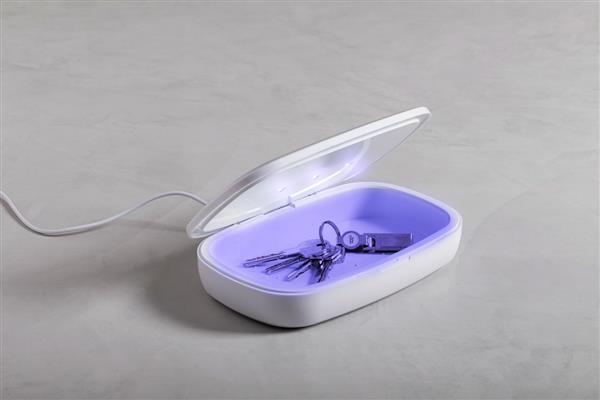 Pudełko do sterylizacji UV-C do niszczenia mikroorganizmów i bakterii na przedmiotach codziennego użytku. Idealny do smartfona, kluczy lub okularów. Czas sterylizacji z funkcją automatycznego wyłączania 5 i 10 minut. W zestawie kabel USB.