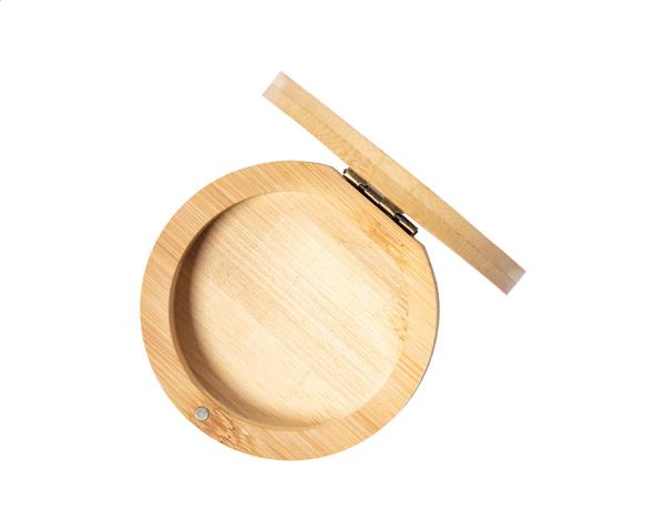 Bambusowa szkatułka na biżuterię z lusterkiem.