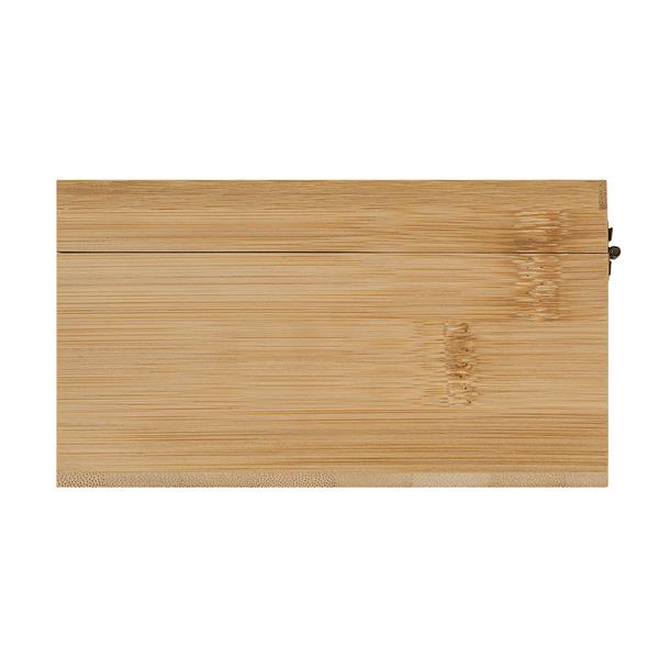 Bambusowe pudełko do przechowywania herbaty z przezroczystą pokrywką i 4 przegródkami.