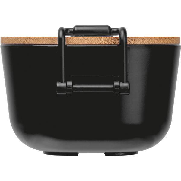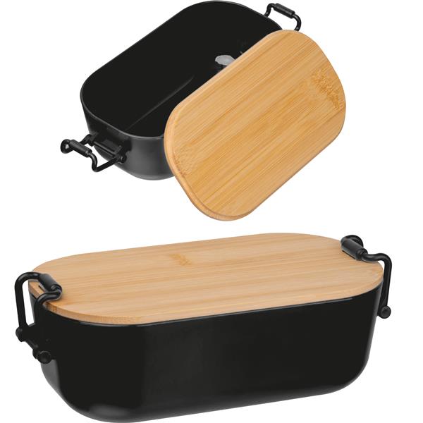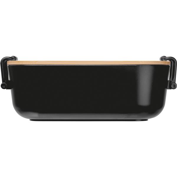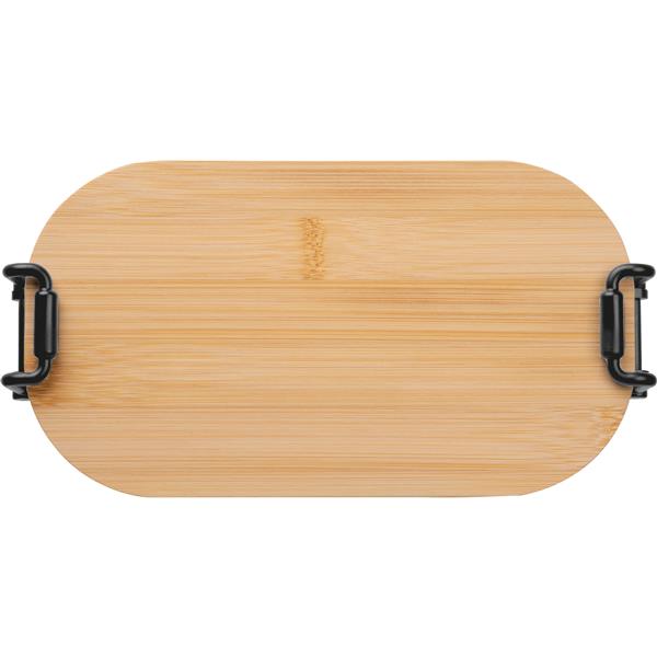 Pudełko na lunch, o pojemności 750 ml, z bambusową pokrywką i metalowymi zaciskami, zamykającymi pudełko.