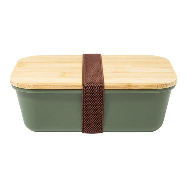 Pudełko śniadaniowe z tworzywa PP z bambusową pokrywką i elastycznym paskiem. 1000 ml.