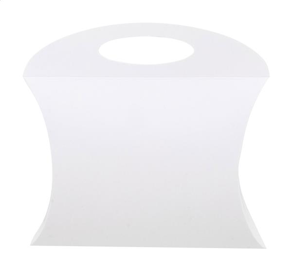 Description: Personalizowane, kartonowe pudełko na poduszkę z kolorowym nadrukiem i uchwytem. Dostarczane na płasko. Min. ilość: 50 szt. Primary Color: biały Material 1: Papier Rodzaj pudełka: Pudełko na poduszkę Rozmiar: 145×161×37 mm