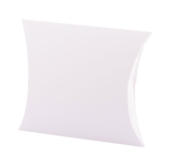 Description: Personalizowane pudełko w kształcie poduszki z tektury z nadrukiem w full kolorze z przodu. Dostarczane na płasko. Min. ilość: 50 szt Primary Color: biały Material 1: Papier Rozmiar: 123×108×30 mm
