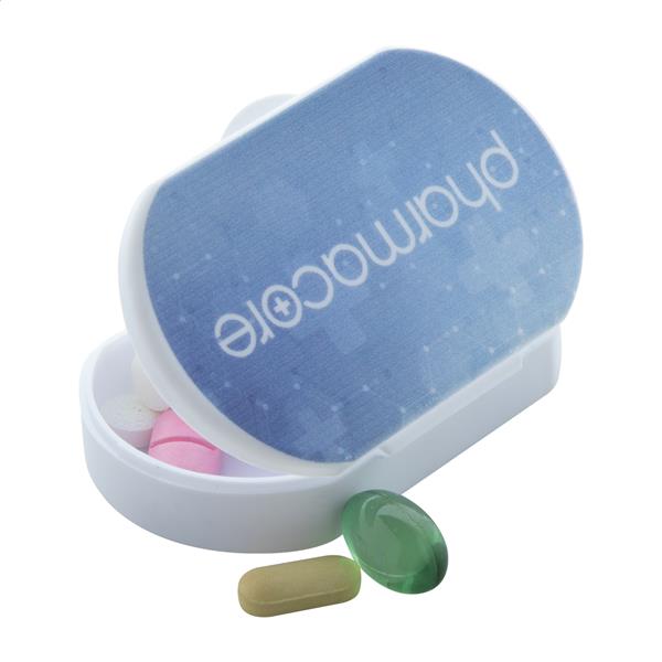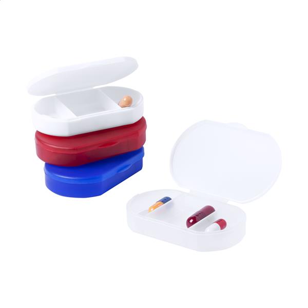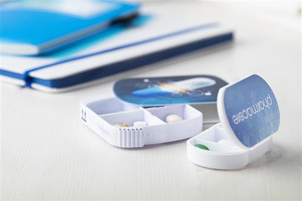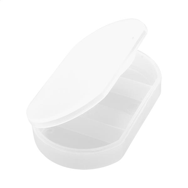 Plastikowe pudełko na tabletki z 3 przegrodami.