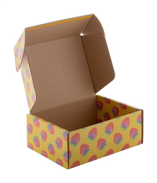 Description: Personalizowane, kwadratowe pudełko prezentowe/pocztowe z tektury falistej z nadrukiem full kolor i z samoprzylepnym paskiem. Dostarczane na płasko. Min. ilość: 50szt. Primary Color: biały Material 1: Karton Rozmiar: 160×120×60 mm
