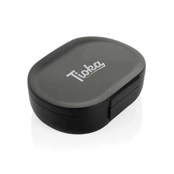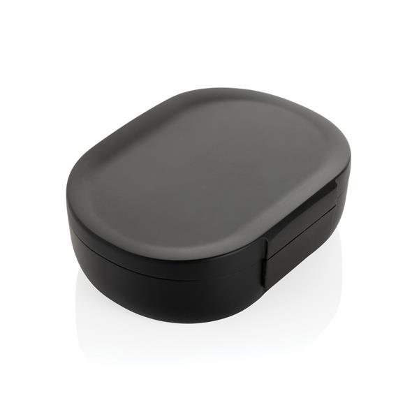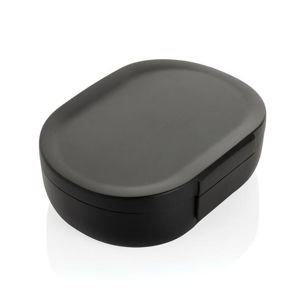 Pudełko śniadaniowe 700 ml, lunchbox, wykonany z materiałów z recyklingu z certyfikatem RCS, całkowita zawartość materiałów z recyklingu obliczona na podstawie wagi całkowitej przedmiotu: 62%, w kartoniku z papieru kraftowego, kartonik można wykorzystać jako stojak na telefon lub doniczkę