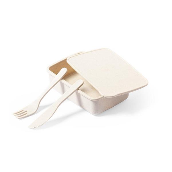 Pudełko śniadaniowe 700 ml, w komplecie nóż i widelec, połączone paskiem