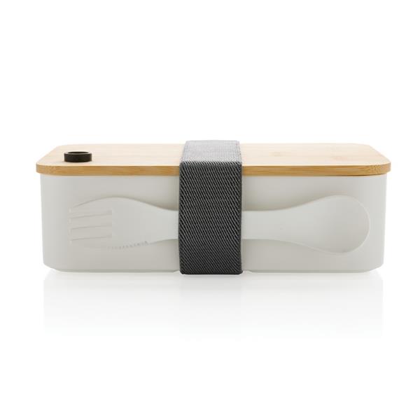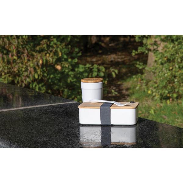 Pudełko śniadaniowe 0,7l, lunchbox, bambusowe wieczko, pojemnik wykonany z PP z recyklingu, całkowita zawartość materiałów z recyklingu obliczona na podstawie wagi całkowitej przedmiotu: 44%, można myć w zmywarce i używać w kuchence mikrofalowej, w ozdobnym pudełku z papieru kraftowego z certyfikatem FSC®, ślad węglowy produktu: 0,87 kg CO2