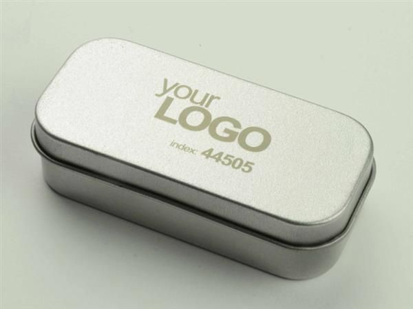 Puszka stanowi idealne dopełnienie do pamięci USB. Wieko mocowane na zawiasach. Maksymalne wymiary pamięci USB: 62 x 15 x 19 mm.