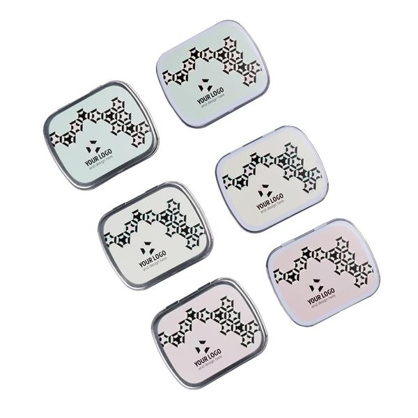 Puszka Prostokątna Mini Brand Me! Mints to metalowa puszka, którą możemy wypełnić słodyczami w 2 wersjach do wyboru: owalne cukierki pudrowe (cukrowe lub bez cukru), bądź guma do żucia bez cukru o smaku miętowym. Na słodyczach możemy nadrukować dwustronne logo Twojej marki.