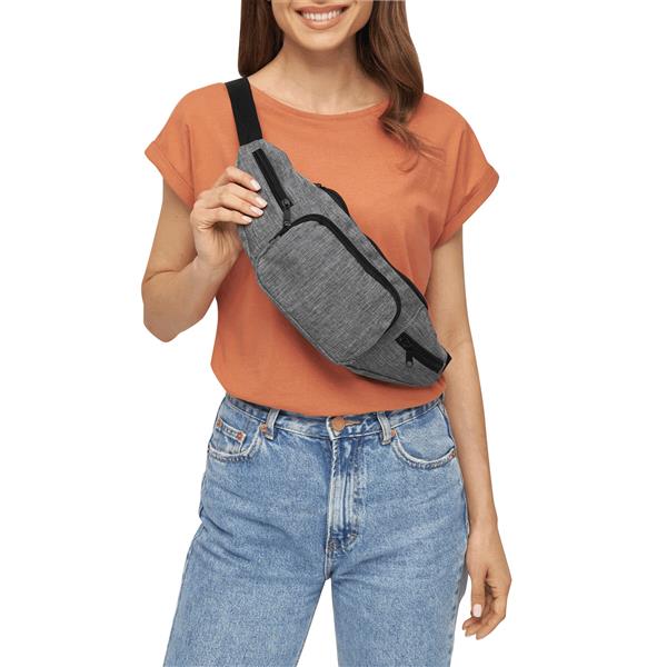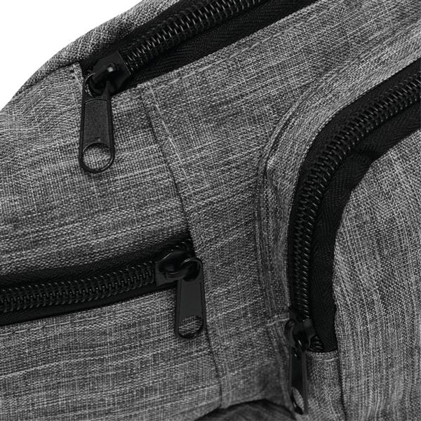 Nerka QUAD z przestronną komorą główną, kieszenią przednią oraz 2 kieszonkami bocznymi zapinanymi na zamek błyskawiczny. Regulowany pasek z klamrą. Materiał: 300D Poliester Kolor: szary Tagi: torby na pasek,torby