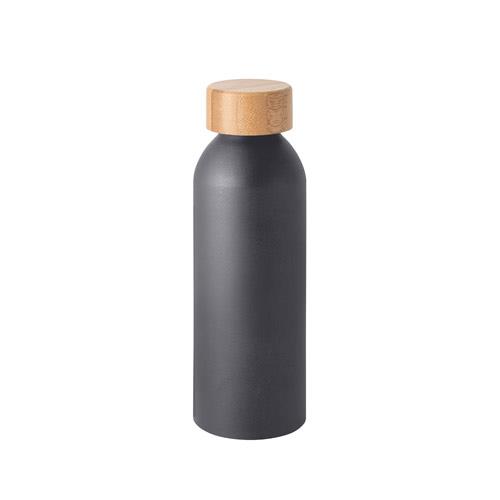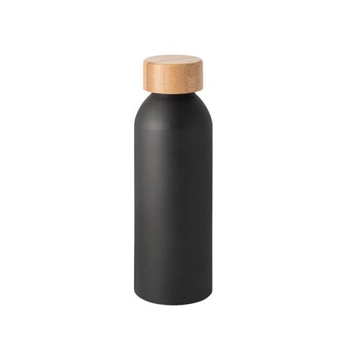 Aluminiowa butelka z bambusową nakrętką i matowym wykończeniem z brokatem. Pojemność do 550 mL. Ponieważ produkt jest wykonany z naturalnych materiałów, kolor produktu oraz wynik drukowania mogą się różnić w zależności od produktu. o65 x 197 mm