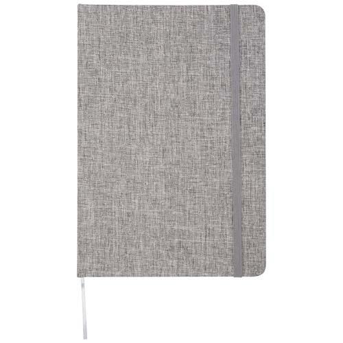 Notatnik A5 w twardej oprawie wykonany z bawełny pochodzącej z recyklingu, z 80 kartkami w linie z papieru o gramaturze papieru 70 g/m2. Notatnik posiada elastyczne zamknięcie, wstążkę i zaokrąglone rogi.