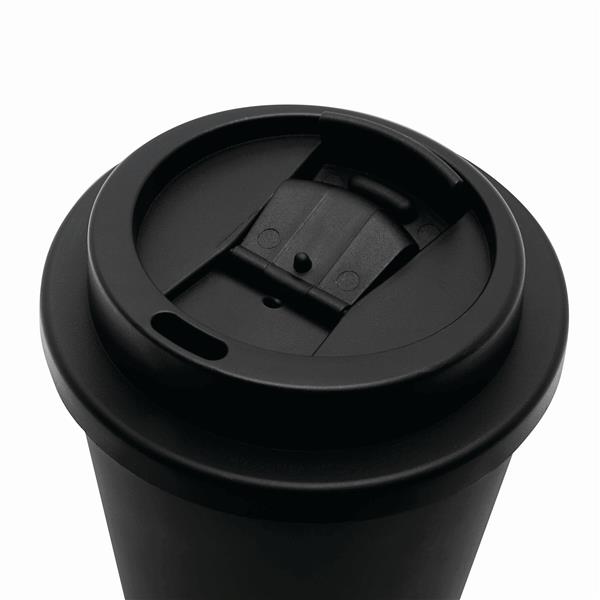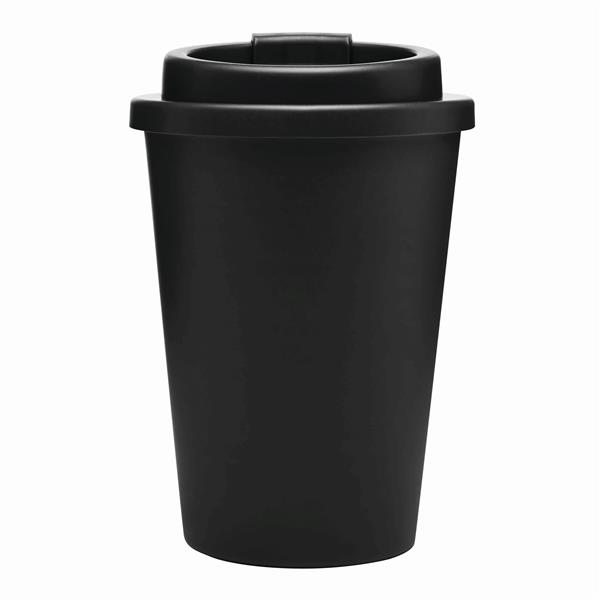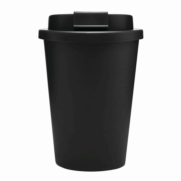 Kubek termiczny RE-USE, dwuścienny: bezpieczna zakrętka z silikonową uszczelką i zintegrowanym otworem do picia na zatrzask, pojemność ok. 300 ml, utrzymuje ciepło do 2 godzin i zimno do 4 godzin. Materiał: PP/Silikon Kolor: czarny Tagi: Kubki izolowane,Kubki,filiżanki,Przybory kuchenne,Artykuły gospodarstwa domowego,Kubki termiczne,Akcesoria podróżne,Kubki do kawy