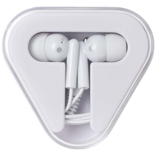 Słuchawki douszne Rebel to proste słuchawki douszne, których można używać z dowolnym standardowym urządzeniem audio z gniazdem audio 3,5 mm. Słuchawki douszne są umieszczone w trójkątnym etui z miejscem na kabel, wykonanym z plastiku pochodzącego z recyklingu, które dobrze chroni je przed uszkodzeniami zewnętrznymi.
