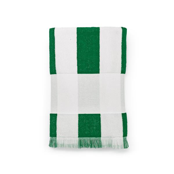 Nasz ręcznik plażowy z bawełny z recyklingu (60% bawełny z recyklingu i 40% bawełny) oferuje idealną równowagę między komfortem a zrównoważonym rozwojem przy gramaturze 450 g/m2. Dzięki dużemu rozmiarowi 80×180 cm i pionowym paskom został wyprodukowany w Portugalii. Dostarczany w biodegradowalnej torebce foliowej.