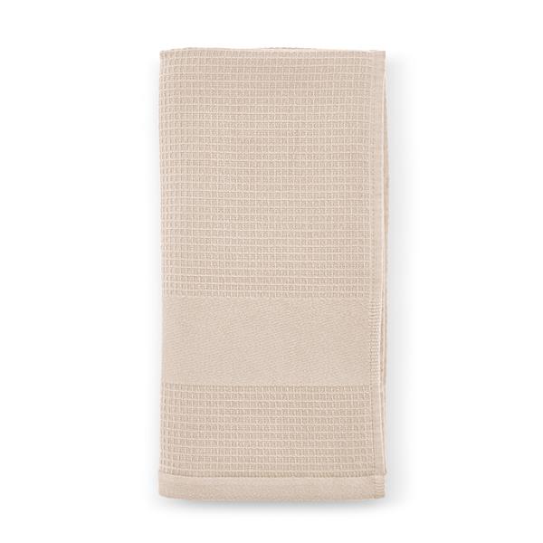 Nasz ręcznik waflowy z bawełny z recyklingu (60% bawełny z recyklingu i 40% bawełny), wyprodukowany w Portugalii, to Twój urok. Ma gramaturę 500 g/m2 i wymiary 30 x 50 cm. Ze stylową opaską z nadrukiem i poręcznym bawełnianym wieszakiem, dostarczany jest w przyjaznej dla środowiska biodegradowalnej torebce foliowej.