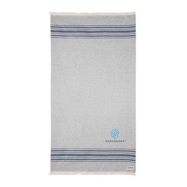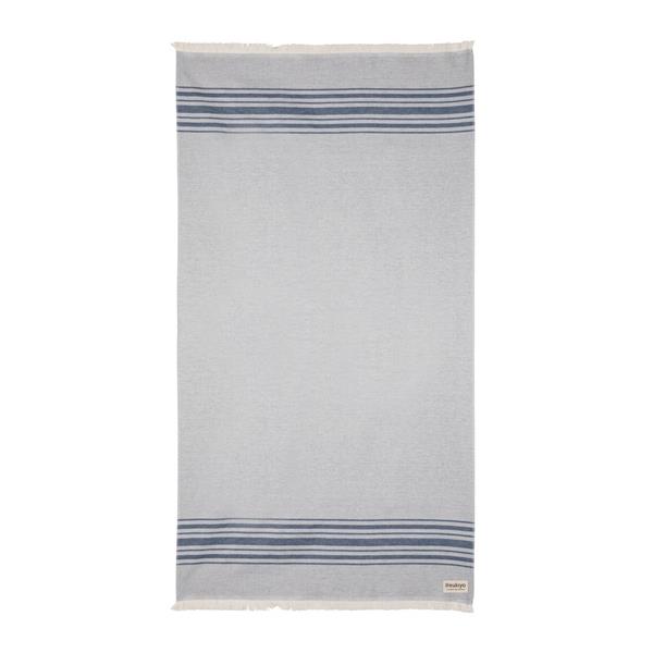 Ręcznik, lekki, wysoce chłonny, odporny na piasek i szybkoschnący, można go wykorzystać również jako koc czy obrus, wykonany z mieszanki 88% bawełny z certyfikatem OEKO-TEX (w procesie produkcji nie są wykorzystane żadne szkodliwe substancje lub barwniki) oraz w 12% z bawełny z recyklingu, dzięki zastosowaniu technologii śledzącej AWARE™ wykorzystane włókna są identyfikowalne z pochodzenia, 2% wpływów z każdego sprzedanego produktu jest przekazywane na rzecz Water.org, można prać w pralce, wymiar 100 x 180 cm (wyprodukowany w Europie / made in Europe)
