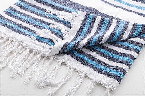 Trójkolorowy ręcznik plażowy typu pareo wykonany w 100% z bawełny, 210 g/m2.