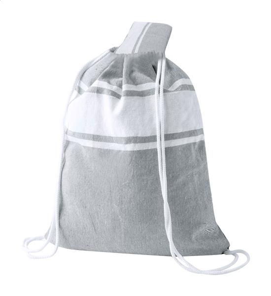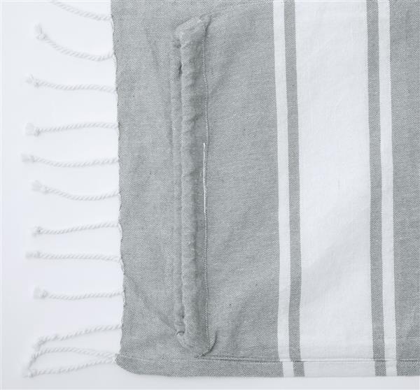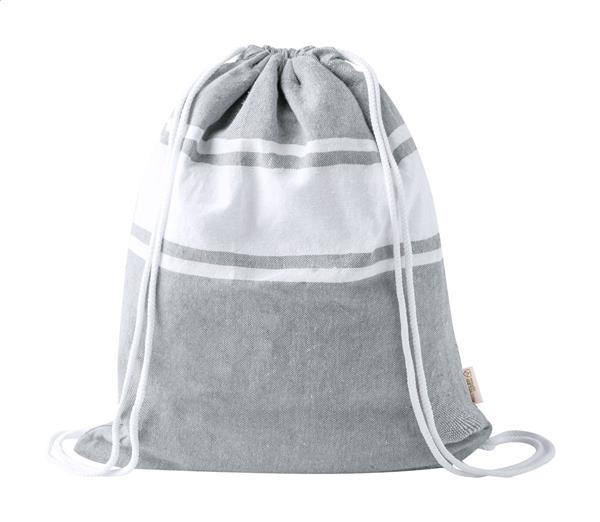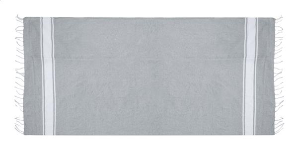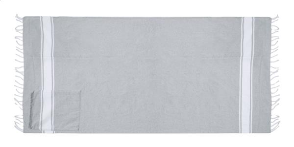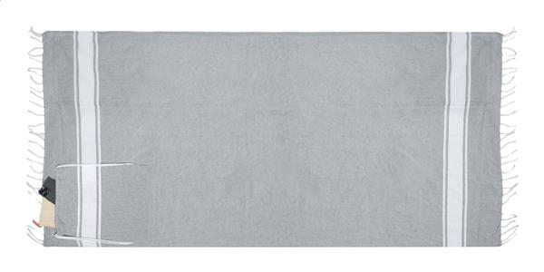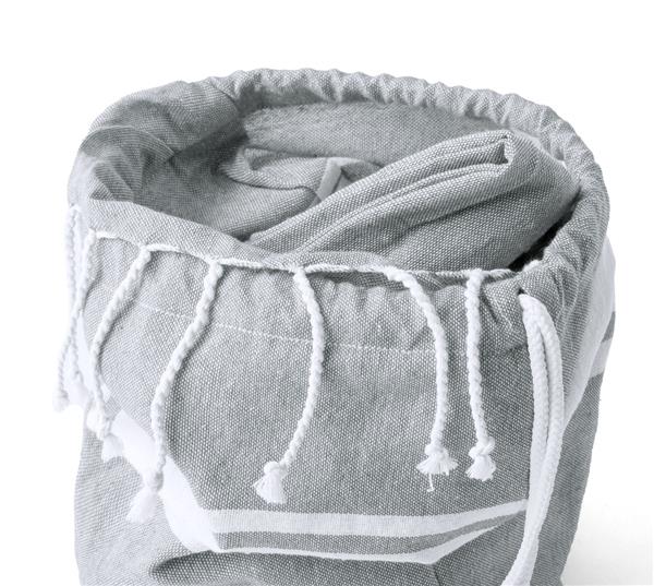 Dwukolorowy ręcznik plażowy pareo z bawełny pochodzącej z recyklingu z pasującą torbą transportową ze sznurkiem. 100% bawełna z recyklingu, 170 g/m2.