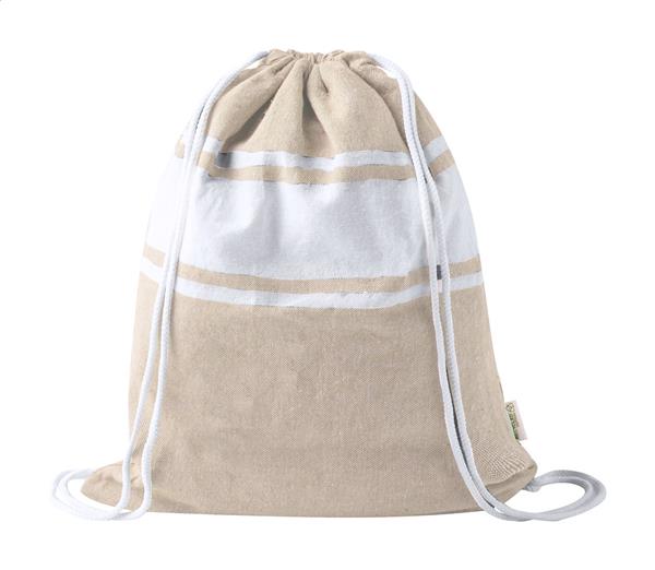 Dwukolorowy ręcznik plażowy pareo z bawełny pochodzącej z recyklingu z pasującą torbą transportową ze sznurkiem. 100% bawełna z recyklingu, 170 g/m2.