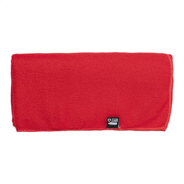Ręcznik sportowy z mikrofibry w etui transportowym RPET z charakterystyczną metką RPET. Poliester RPET, 160 g/m2.