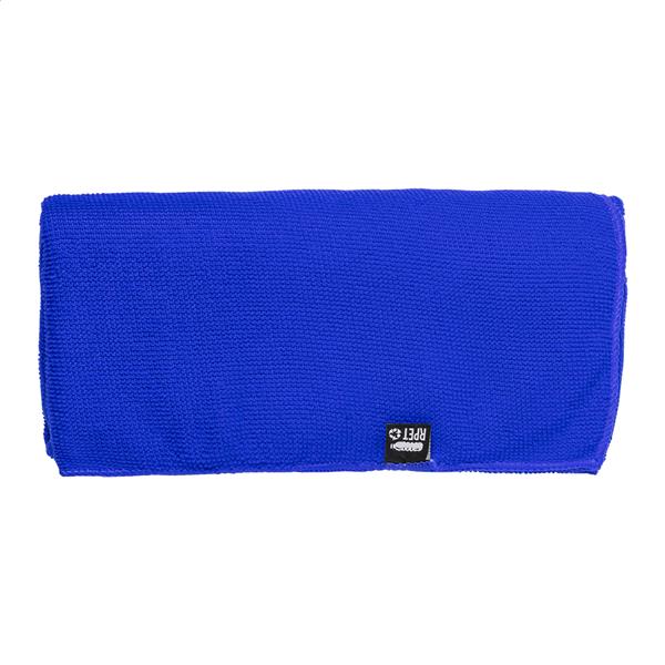 Ręcznik sportowy z mikrofibry w etui transportowym RPET z charakterystyczną metką RPET. Poliester RPET, 160 g/m2.