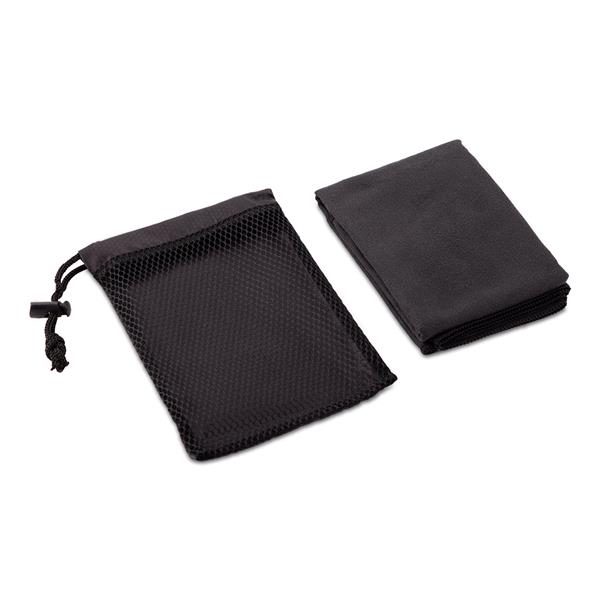 Sportowy ręcznik w rozmiarze 40 x 80 cm w poliestrowym etui. Dobrze wchłania wodę i szybko schnie. Pakowany w pokrowiec ze ściągaczem. Gramatura 200g/m2.