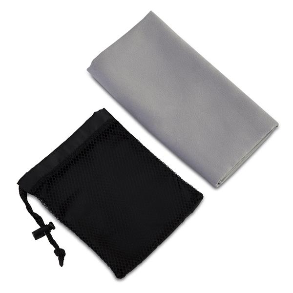 Sportowy ręcznik w rozmiarze 40 x 80 cm w poliestrowym etui. Dobrze wchłania wodę i szybko schnie. Pakowany w pokrowiec ze ściągaczem. Gramatura 200g/m2.