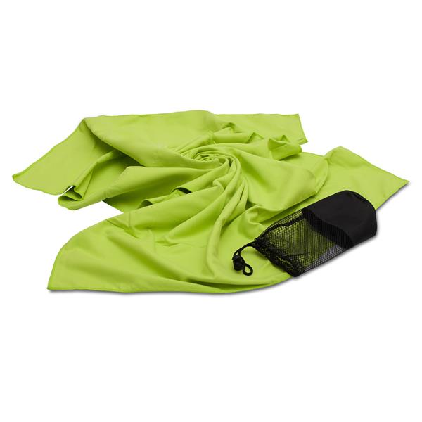 Dobrze wchłaniający wodę i szybkoschnący ręcznik sportowy o wymiarach 80 x 140 cm, wykonany z mikrofibry 200 g/m2. Pakowany w pokrowiec ze ściągaczem.