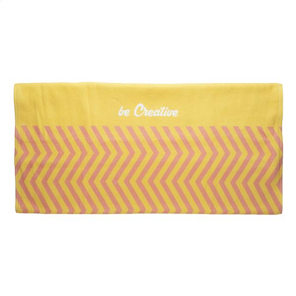 Dwustronny ręcznik z nadrukiem sublimacyjnym po jednej stronie. 100% bawełna + 100% mikrofibra, 400 g/m2. Cena obejmuje nadruk sublimacyjny. MOQ: 25 szt.