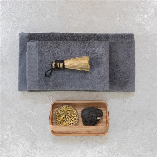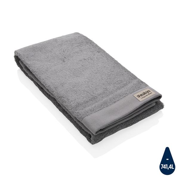 Ręcznik, miękki i gruby, wykonany z mieszanki 70% bawełny z certyfikatem OEKO-TEX (w procesie produkcji nie są wykorzystane żadne szkodliwe substancje lub barwniki) oraz w 30% z bawełny z recyklingu, dzięki zastosowaniu technologii śledzącej AWARE™ wykorzystane włókna są identyfikowalne z pochodzenia, 2% wpływów z każdego sprzedanego produktu jest przekazywane na rzecz Water.org, można prać w pralce (wyprodukowany w Europie / made in Europe)