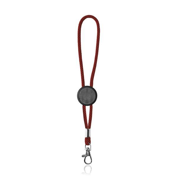 Smycz sznurkowa z karabińczykiem i regulacją długości. Rozmiar: 23 x 0,5 x 3 cm DO (doming do 6 cm2): O 2,5 Kolor: Czerwony