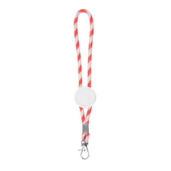 Smycz sznurkowa z karabińczykiem i regulacją długości. Rozmiar: 23 x 0,5 x 3 cm DO (doming do 6 cm2): O 2,6 Kolor: Czerwony
