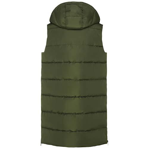 Reine ocieplana kamizelka damskaWyściełana kamizelka z odpinanym kapturem. Wysoki kołnierz. Zamek błyskawiczny z przodu ukryty pod klapką. Dwie kieszenie zapinane na zatrzask. Boczne otwory z zamkami błyskawicznymi. Dostęp do wewnętrznej kieszeni na piersi. Wodoodporna. Materiał: Taffeta100% Poliester, Lining, 100% Poliester, Padding/filling, 100% Poliester Kolor: Militar Green