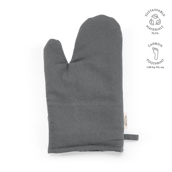 Rękawica ta została wykonana z ekologicznie świadomej bawełny z recyklingu o gramaturze 220 g/m2 i jest gotowa na każdą kulinarną przygodę, a jej sekretem jest oddzielny kciuk zapewniający pewny chwyt. Rękawice są również zapakowane w indywidualne pudełko typu kraft.