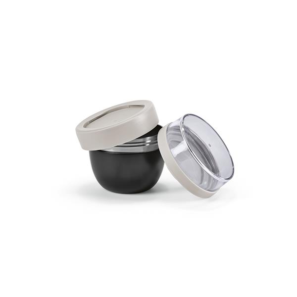 Ten pojemnik na żywność to eko-duet: 350 ml (260 ml netto) stali nierdzewnej pochodzącej z recyklingu i 230 ml (110 ml netto) plastikowej, przezroczystej pokrywki. Urok podwójnych ścianek, owalny wdzięk. Nie rozlewa się, ponieważ jest szczelny. Idealna kombinacja do jogurtu i granoli.