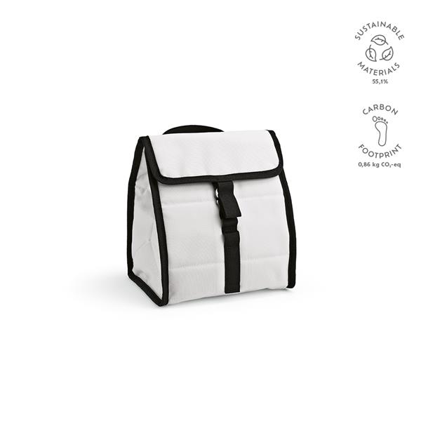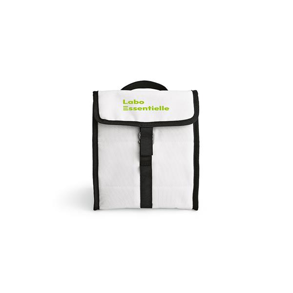 Chłodne napoje dzięki naszej chłodziarce rPET z eleganckimi czarnymi wykończeniami. Zaprojektowany z myślą o ekologii, jego tkanina pochodzi z materiałów pochodzących z recyklingu. Zwijane zamknięcie zapewnia łatwy dostęp, a górny uchwyt ułatwia przenoszenie.