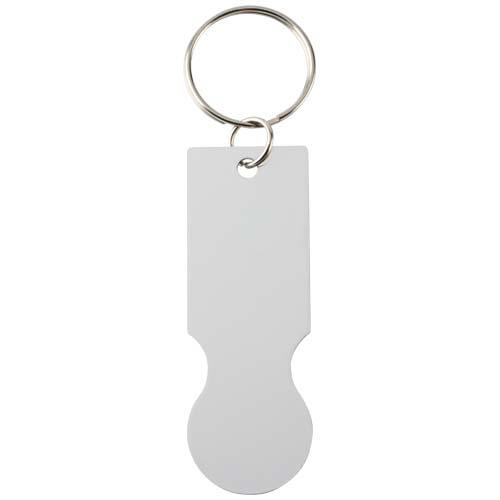 Metalowy brelok Rhea z żetonem do wózka został zaprojektowany tak, aby pasował do większości wózków sklepowych, umożliwiając ich otwieranie bez użycia monet lub żetonów.