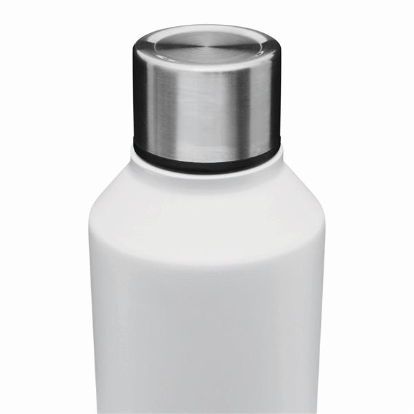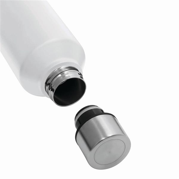 Butelka próżniowa do picia RICH FLAVOUR, dwuścienna: wewnątrz i na zewnątrz ze stali nierdzewnej, bezpieczna zakrętka z silikonową uszczelką, pojemność ok. 500 ml, utrzymuje ciepło do 8 godzin i zimno do 12 godzin. Materiał: Stal nierdzewna/PP/Silikon Kolor: biały Tagi: Kubki izolowane,kubki,przybory kuchenne,artykuły gospodarstwa domowego,kubki termiczne,akcesoria podróżne,kubki do kawy