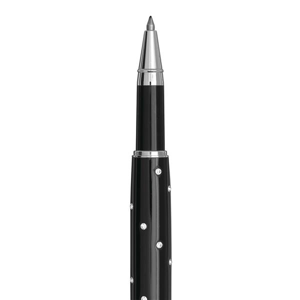 Metalowe pióro kulkowe RIGA z 24 kryształami z serii CRYSTALLIZED™ Swarovski Elements. Lśniąca czarna powierzchnia korpusu. W pudełku.