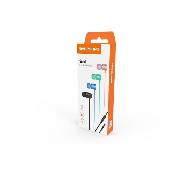 RIVERSONG Seed+ to dokanałowe słuchawki przewodowe do urządzeń wyposażonych w gniazdo jack 3,5 mm. Są uniwersalne i pasują do wielu urządzeń takich jak: smartfony, odtwarzacze mp3/mp4, laptopy i innych.