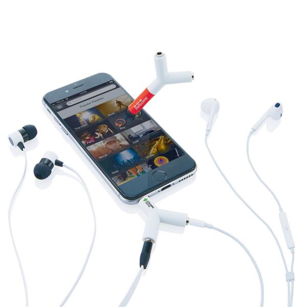 Uniwersalny rozdzielacz do słuchawek ABS z wtyczką audio 3,5 mm pozwala dwóm osobom na słuchanie tej samej muzyki w tym samym czasie przy pomocy dwóch oddzielnych zestawów słuchawek. Ponadto, posiada touch pen do poruszania się po ekranie dotykowym.