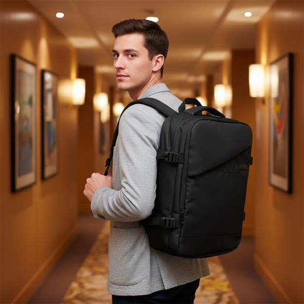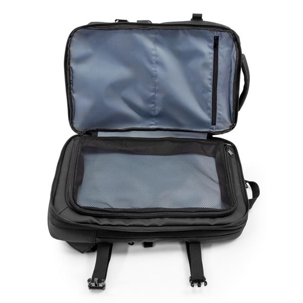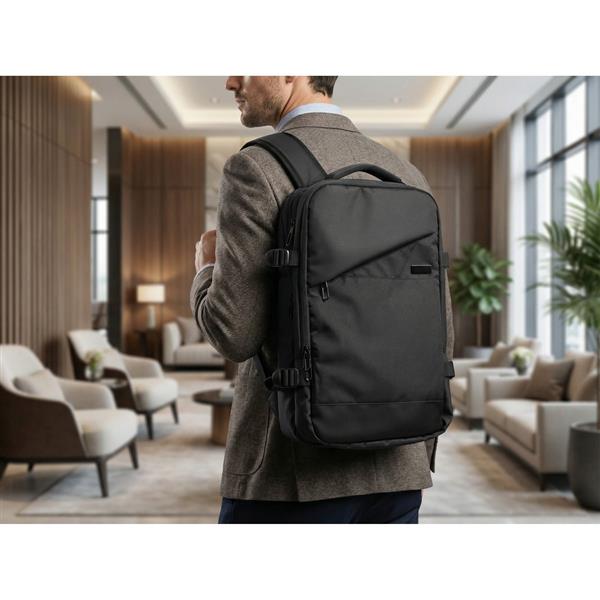 Plecak kabinowy Exclusive Collection, rozszerzalna konstrukcja pomaga dostosować wymiary plecaka do wymogów transportu oraz indywidualnych potrzeb użytkownika, dwie przegrody główne zamykane na zamek błyskawiczny, dwa regulowane paski kompresyjne ułatwiające stabilizacje plecaka, miękkie i regulowane paski na ramię umożliwiające dopasowanie ich długości do własnych preferencji, produkt wykonany z poliestru i PU