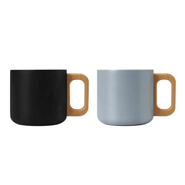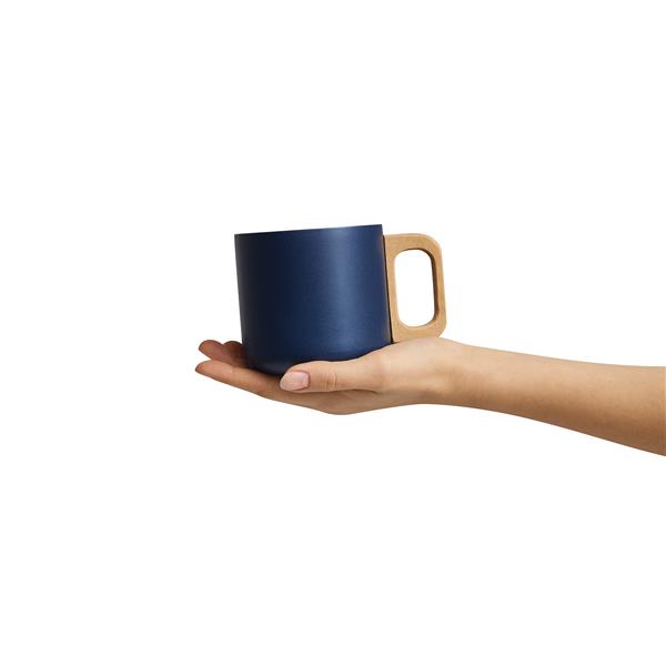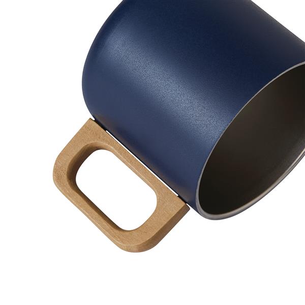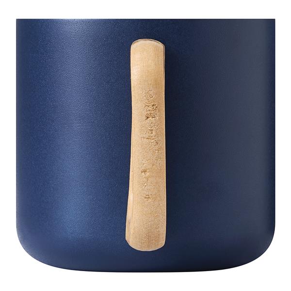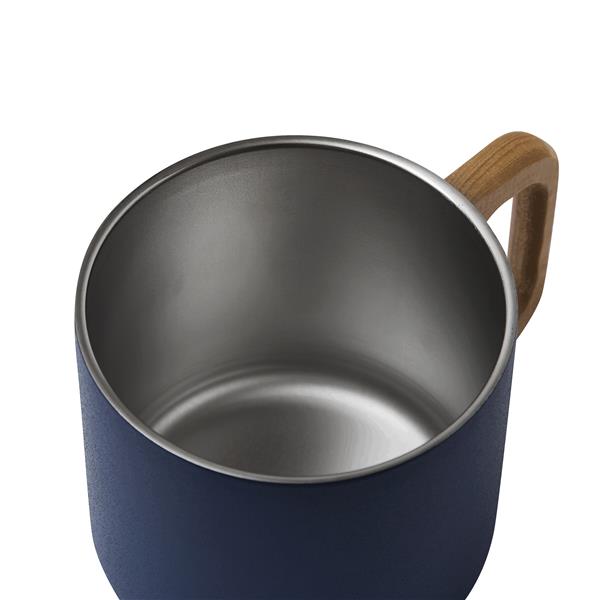 Kubek ze stali nierdzewnej RUSTIC TRIP, z podwójną izolacją. Posiada drewniany uchwyt, kolorową matowa powłokę proszkową na zewnątrz i srebrną wewnątrz. Pojemność kubka to ok. 350 ml.