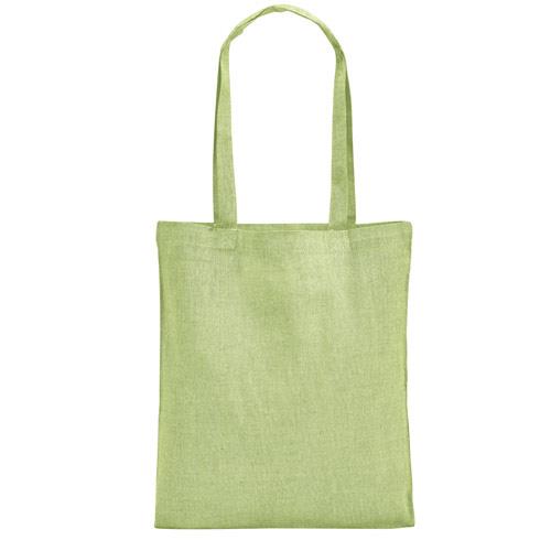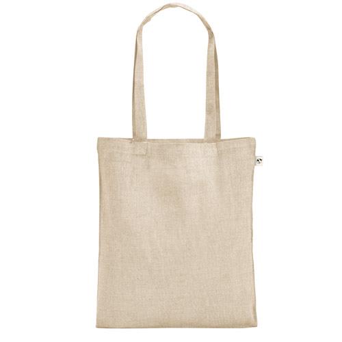 Torba zawierająca bawełnę pochodzącą (70% rPET), poliester z recyklingu (30%) (140 g/m2), z uchwytami o długości 60 cm. Bawełna z recyklingu jest niebarwiona. Surowiec jest używany w swojej oryginalnej formie i kolorze, bez użycia barwiących lub wybielających chemikaliów, co przyczynia się do zmniejszania negatywnego wpływu na środowisko. 380 x 420 mm