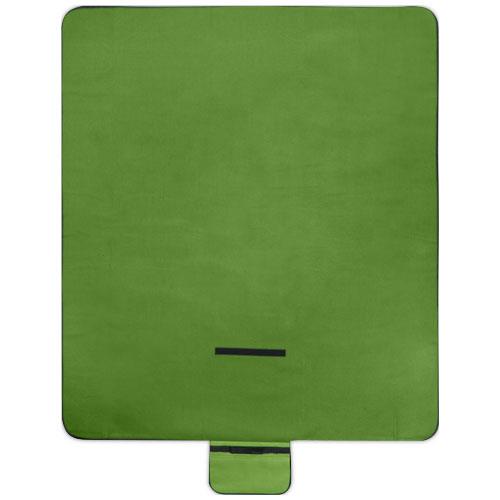 Wodoodporny koc piknikowy o gramaturze 140 g/m2 wykonany z plastiku PET z recyklingu, dzięki czemu jest to ekologiczny wybór. Po złożeniu i zabezpieczeniu koc jest łatwy do przechowywania i przenoszenia za pomocą dołączonego uchwytu.