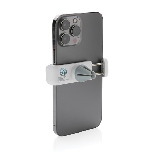 Regulowany samochodowy uchwyt do telefonu, mocowanie do wentylacji, obrotowy (360 stopni), wykonany w 37% z materiałów z recyklingu, mechanizm ze stali nierdzewnej wewnątrz, ślad węglowy produktu: 0,13 kg CO2