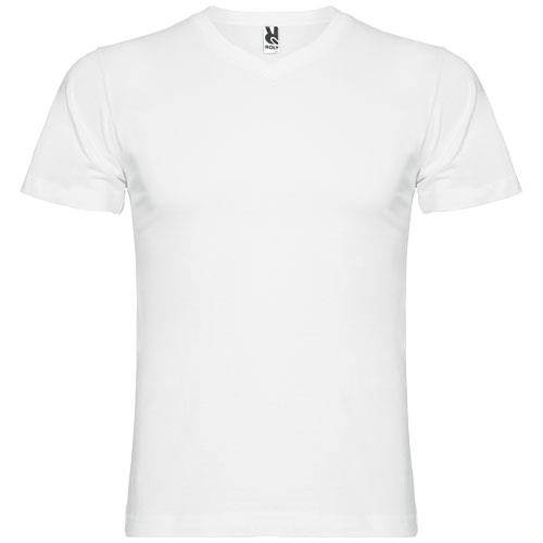 Samoyedo koszulka męska z krótkim rękawem i dekoltem w serekKoszulka rurkowa z krótkim rękawem i 2-warstwowym dekoltem w szpic. Wzmocnione kryte szwy w kołnierzu i ramionach. Usuwalna metka. Materiał: Splot Single Jersey100% Bawełna, 155 g/m2 Kolor: Biały
